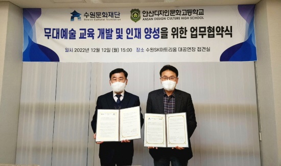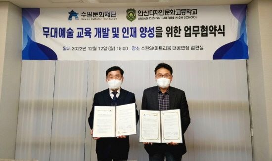 ¼ö¿ø¹®ÈÀç´Ü(´ëÇ¥ÀÌ»ç ±èÇö±¤)Àº 12ÀÏ ¾È»êµðÀÚÀι®È°í(±³Àå ¹ÎÇü±â)¿Í ¹«´ë¿¹¼ú ±³À° °³¹ß ¹× ÀÎÀç ¾ç¼ºÀ» À§ÇÑ ¾÷¹«Çù¾àÀ» ü°áÇß´Ù°í ¹àÇû´Ù.