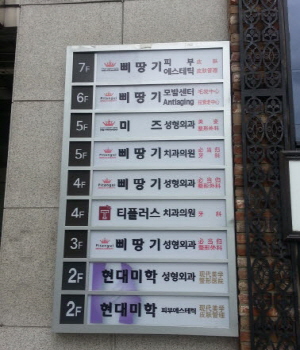 ¼ºÇü °ü·Ã º´ÀÇ¿øµéÀº ÁÖ·Î ½Å»ç¿ª»ç°Å¸® ÃÊÀÔ°ú ÁöÇÏö ½Å»ç¿ª 1~2¹ø Ãⱸ ¹æ¸é µµ»ê´ë·Îº¯À» µû¶ó À§Ä¡ÇØ ÀÖ´Ù. °¡Àå ¸¹Àº º´ÀÇ¿øÀº ¼ºÇü¿Ü°ú¸ç À̾î ÇǺΰú, Ä¡°ú µîµµ ¸¹ÀÌ º¸ÀδÙ. ¶Ç ºñ¸¸Å¬¸®´Ð, µÎ¹ßŬ¸®´Ð µî ¡®¹Ì¡¯¿Í °ü·ÃµÈ ¾÷Á¾µéµµ ÇÔ²² ÀÚ¸®¸¦ Çϰí ÀÖ´Ù. ³»°ú, ¿Ü°ú, Á¤½Å°ú, À̺ñÀÎÈİú µîÀº ¼Õ¿¡ ²ÅÀ» Á¤µµ´Ù. ÇѶ§ °¢Á¾ ÁÖÁ¡°ú À½½ÄÁ¡À¸·Î °¡µæ Âù À̰÷À» ¼ºÇü¿Ü°ú, ÇǺΰú µîÀÌ ´ë½ÅÇϰí ÀÖ´Â ¼ÀÀÌ´Ù.