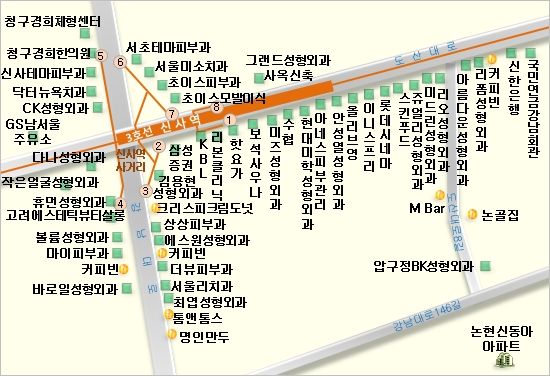 ÀÌ »Ó¸¸ÀÌ ¾Æ´Ï´Ù. ÃÖ±Ù¿¡´Â ¾Ð±¸Á¤µ¿°ú û´ãµ¿À» Áß½ÉÀ¸·Î Çü¼ºµÈ ºäƼº§Æ®°¡ ½Å»çµ¿±îÁö À̾îÁ® ½Å»ç¿ª»ç°Å¸®¿Í µµ»ê´ë·Î ´ë·Îº¯¿¡´Â ¼ºÇü¿Ü°ú, ÇǺΰú, Ä¡°ú µîÀÇ º´ÀÇ¿øµéÀÌ ÁñºñÇÏ°Ô µé¾î¼¹´Ù.