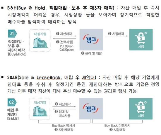 ±â¾÷ÀÚ»ê ¸Å°¢Áö¿ø ÇÁ·Î±×·¥Àº ±â¾÷ÀÌ À¯µ¿¼º È®º¸¿Í À繫±¸Á¶ °³¼±À» À§ÇØ º¸À¯Çϰí ÀÖ´Â ÀÚ»êÀÇ ¸Å°¢À» ½ÅûÇÏ¸é ½É»ç¸¦ °ÅÃÄ Ä·ÄÚ ´Üµ¶ ¶Ç´Â ¹Î°£°ú °øµ¿À¸·Î ÀμöÇÏ´Â ³»¿ëÀÌ´Ù.