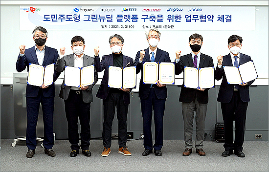 °æ»óºÏµµ´Â 31ÀÏ Æ÷Ç×°ø°ú´ëÇб³¿¡¼ ¢ß¿¡ÀÌÄ¡¿¡³ÊÁö, ¢ßÆ÷½ºÄÚ, °æºÏ¿ì¸®ÁýRE100 Çùµ¿Á¶ÇÕ, Æ÷Ç×°ø°ú´ëÇб³, ¢ßÇÇ¿¥±×·Î¿ì¿Í ¡®µµ¹ÎÁÖµµÇü ±×¸°´ºµô Ç÷§Æû ±¸Ã࡯À» À§ÇÑ »óÈ£Çù·Â ¾çÇØ°¢¼(MOU)¸¦ ü°áÇß´Ù.