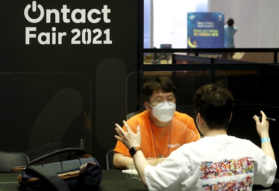 ¡ã 6ÀÏ ¼¿ï °³²±¸ »ï¼ºµ¿ ÄÚ¿¢½º¿¡¼ ¡®2021 ´ëÇѹα¹ ºñ´ë¸é»ê¾÷ ¹Ú¶÷ȸ¡¯ °¡ ¿·È´Ù. ºñ´ë¸é»ê¾÷À» Áß½ÉÀ¸·Î Á¤ºÎ¿¡¼ ÁøÇàÇÏ´Â ¹Ù¿ìó Áö¿ø»ç¾÷ÀÇ ¼ö¿ä±â¾÷°ú °ø±Þ±â¾÷ÀÇ ¸ÅĪÀÌ ÀÌ·ç¾îÁö´Â ºñ´ë¸é ¹Ù¿ìó Àü¹® ¹Ú¶÷ȸ´Ù. »çÁøÀº °¡»óÇö½Ç üÇè ºÎ½º Çà»çÀå¿¡¼ ÇÑ °ü¶÷°´ÀÌ ºÎ½º¿¡¼ ±â±â¸¦ üÇèÇϰí ÀÖ´Â ¸ð½À. [»çÁø=ȲÁ¤¾Æ ±âÀÚ] ¨Ï½ºÄ«À̵¥Àϸ®