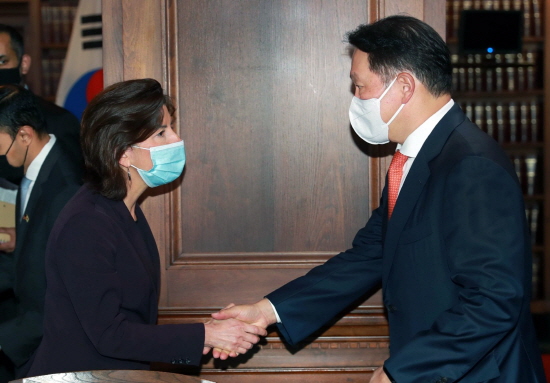 ´ëÇÑ»óÀÇ È¸ÀåÀ» °âÇϰí ÀÖ´Â ÃÖÅ¿ø SK ȸÀåÀÌ ÇÑ¡¤¹Ì Á¤»óȸ´ãÀ» °è±â·Î ¹Ì±¹ ¿ö½ÌÅÏÀ» ã¾Æ ÇÑ∙¹Ì Àç°èÀÇ ½ÇÁúÀû Çù·ÂÀ» À§ÇÑ °æÁ¦¿Ü±³¿¡ ³ª¼¹´Ù.