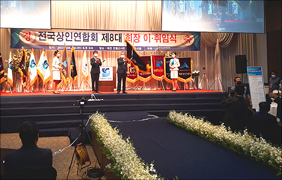 °æºÏ»óÀο¬ÇÕȸ Á¤µ¿½Ä ȸÀåÀÌ Àü±¹»óÀο¬ÇÕȸ Á¦8´ë ȸÀåÀ¸·Î ÃëÀÓÇØ 26ÀÏ ´ëÀü ¼±»þÀÎ ÄÁº¥¼ÇȦ¿¡¼ ÃëÀÓ½ÄÀÌ ¿·È´Ù.