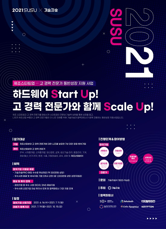 Á¦Á¶»ê¾÷ Àü¹®°¡ ¸ÅĪ Ç÷§Æû ¡®±â¼úÀÚ½£¡¯´Â ¼¿ï½Ã 50Ç÷¯½ºÀç´Ü¡¤¸£È£º¿ ºñÁî´Ï½º ÀÎÅ¥º£ÀÌÅÍ¡¤µðÁöÅдëÀå°£15¡¤ÄÝÁî´ÙÀ̳ª¹Í½º¡¤Å©¸³Åæ°ú Çù·ÂÇØ Á¦Á¶½ºÅ¸Æ®¾÷-Á¦Á¶»ê¾÷ºÐ¾ß °í°æ·Â Àü¹®°¡ µ¿¹Ý¼ºÀå Áö¿ø»ç¾÷ ¡®2021SUSU¡¯¸¦ ÁøÇàÇÑ´Ù°í 18ÀÏ ¹àÇû´Ù.