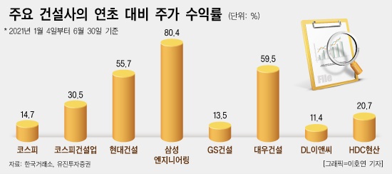 °³º° Á¾¸ñµéµµ ³ôÀº »ó½Â·üÀ» º¸¿´´Ù. ¡âÇö´ë°Ç¼³ 55.7% ¡â»ï¼º¿£Áö´Ï¾î¸µ 80.4% ¡âGS°Ç¼³ 13.5% ¡â´ë¿ì°Ç¼³ 59.5% ¡âDLÀ̾ؾ¾ 11.4% ¡âHDCÇö´ë»ê¾÷ 20.7% µîÀ̾ú´Ù.