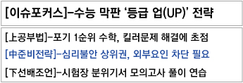 Æò¼Ò 3~5µî±Þ ¶Ç´Â ±× ÀÌÇÏÀÇ ¼ºÀûÀ» À¯ÁöÇÏ´Â ÁßÇÏÀ§±Ç Çлýµéµµ 80¿© ÀÏ ³²Àº ½Ã°£À» Á¦´ë·Î Ȱ¿ëÇÏ¸é ¼ö´É¿¡¼ ¼ºÀûÀ» Å©°Ô ¿Ã¸± ¼ö ÀÖ´Ù. ÀÌµé ¿ª½Ã ¼ö´É¿¡¼ ¼ºÀûÀ» ¿Ã¸®±â À§Çؼ´Â Á¤½Å, ü·ÂÀûÀÎ ¹«ÀåÀÌ ÇÊ¿äÇѵ¥ »óÀ§±Ç Çлýµé°ú´Â ¹æ½ÄÀÌ ´Ù¼Ò ´Ù¸£´Ù.