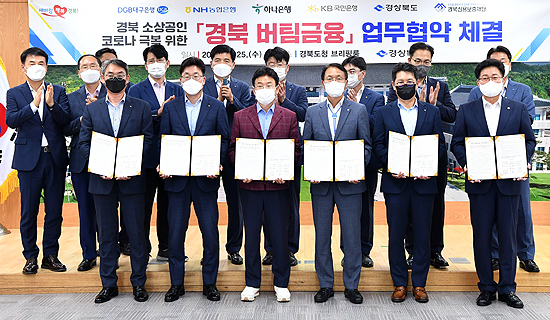 °æ»óºÏµµ´Â 25ÀÏ ¿ÀÈÄ µµÃ»¿¡¼ ´ë±¸ÀºÇà, ³óÇùÀºÇà, ÇϳªÀºÇà, ±¹¹ÎÀºÇà°ú °æ»óºÏµµ‧°æºÏ½Å¿ëº¸ÁõÀç´Ü °£ÀÇ Áö¿ª ¼Ò»ó°øÀÎ Äڷγª À§±â ±Øº¹À» À§ÇÑ ¡®°æºÏ ¹öÆÀ±ÝÀ¶ ¾÷¹«Çù¾à¡¯À» ü°áÇß´Ù.