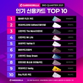 6À§´Â ¹«Á¶°Ç ÇÒÀο¡ °øÇ×¶ó¿îÁö ¹«·á ÀÌ¿ë ¼ºñ½º¸¦ °çµéÀÎ ¡®¿ì¸®Ä«µå DA@Ä«µåÀÇÁ¤¼®¡¯ÀÌ, 7À§´Â ¸ðµç °¡¸ÍÁ¡¿¡¼ 0.7% Àû¸³, °¡Àå ¸¹ÀÌ ÀÌ¿ëÇÑ ¿µ¿ªÀº 5¹è ÀÚµ¿ Àû¸³µÇ´Â ¡®½ÅÇÑÄ«µå Deep Dream¡¯ÀÌ Â÷ÁöÇß´Ù. ÀÌ¾î ¼îÇΰú »ýȰ ¿µ¿ª¿¡¼ ÇÒÀÎ ÇýÅÃÀ» Á¦°ø, ³ôÀº ÇÇÅ··ü·Î ÀαâÀÎ ¡®KB±¹¹Î źź´ë·Î ¿Ã¼îÇΠƼŸ´½Ä«µå¡¯°¡ 8À§, ´Ù¾çÇÑ ÇüÅÂÀÇ °¡Á·À» À§ÇÑ »ýȰºñ Ä«µå ¡®Çö´ëÄ«µåZ family¡¯°¡ 9À§·Î Â÷Æ®¿¡ »õ·Ó°Ô ÁøÀÔÇß´Ù. ¸ðµç ±¹³» °¡¸ÍÁ¡¿¡¼ 0.7%, ±¹³» ¿Â¶óÀÎ °¡¸ÍÁ¡°ú ÇØ¿Ü¿¡¼´Â 1.7% ÇÒÀÎÀ» Á¦°øÇÏ´Â ¡®ÇϳªÄ«µå Any PLUS¡¯°¡ 10À§·Î TOP 10¿¡ ÀçÁøÀÔÇß´Ù.