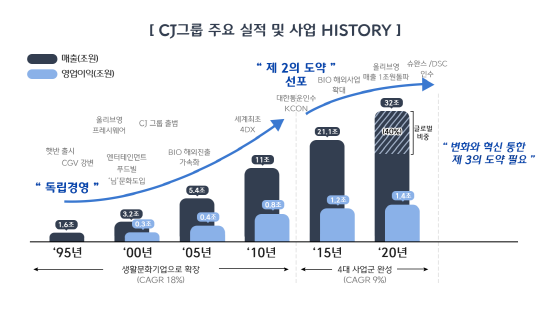 ±×´Â ¡°¾ÕÀ¸·Î CJ´Â Æ®·»µå ¸®µù·Â, ±â¼ú·Â, ¸¶ÄÉÆÃ µî ÃʰÝÂ÷¿ª·®À¸·Î ¹Ì·¡ Çõ½Å¼ºÀå¿¡ ÁýÁßÇϰí À̸¦ ÁÖµµÇÒ ÃÖ°íÀÎÀçµéÀ» À§ÇØ Á¶Á÷¹®È¸¦ Çõ¸íÀûÀ¸·Î Çõ½ÅÇØ ¼¼°èÀÎÀÇ »õ·Î¿î »îÀ» µðÀÚÀÎÇÏ´Â ¹Ì·¡ ¶óÀÌÇÁ½ºÅ¸ÀÏ ±â¾÷À¸·Î µµ¾àÇÒ °ÍÀÌ´Ù¡±°í ¼±¾ðÇß´Ù. ¡®¹Ì·¡¿Í ÀÎÀ硯¸¦ ±×·ì°æ¿µÀÇ ÇÙ½É Å°¿öµå·Î ÀâÀº ¼ÀÀÌ´Ù.
