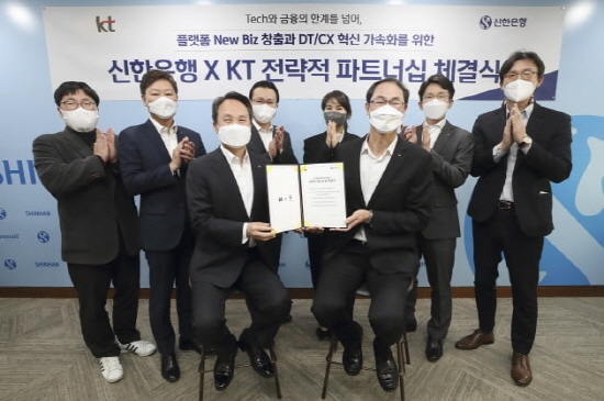 18ÀÏ ½ÅÇÑÀºÇàÀº KT¿Í ¡®¹Ì·¡¼ºÀå µðÁöÅÐÀüȯ(DX) »ç¾÷Çù·ÂÀ» À§ÇÑ Àü·«Àû ÆÄÆ®³Ê½Ê¡¯À» Àü³¯ ü°áÇß´Ù°í ¹àÇû´Ù. À̸¦ À§ÇØ °¢°¢ 4375¾ï¿ø ±Ô¸ðÀÇ ÁöºÐÀ» ¸Â±³È¯Çß´Ù. À̳¯ KT´Â ½ÅÇѱÝÀ¶ÁöÁÖ ÁÖ½Ä 1113¸¸3079ÁÖ(¾à 2.08%)¸¦ ÃëµæÇÑ´Ù°í °ø½ÃÇß°í, ½ÅÇÑÀºÇ൵ °°Àº ¾×¼öÀÇ KT ÁöºÐ ¾à 5.46%¸¦ »çµé¿´´Ù.