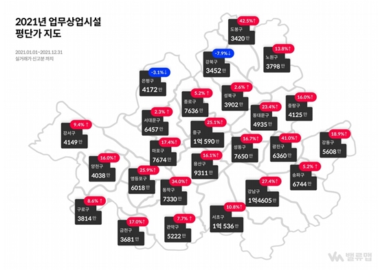 ¼¿ï ´ëºÎºÐÀÇ Áö¿ª¿¡¼ 3.3§³´ç ¾÷¹«»ó¾÷½Ã¼³ÀÇ °¡°ÝÀÌ ¿Ã¶úÀ¸³ª °ºÏ±¸(3452¸¸¿ø)¿Í ÀºÆò±¸(4172¸¸¿ø)´Â °¢°¢ 7.9%, 3.1% ¶³¾îÁ³´Ù.