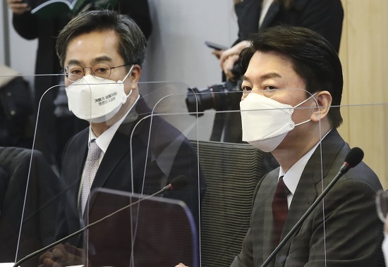 1ÀÏ ±è È帴 ÀÌ Èĺ¸¿Í ¼¿ï ¸¶Æ÷±¸ÀÇ ÇÑ Ä«Æä¿¡¼ ȸµ¿ÇÏ°í ¡®Á¤Ä¡±³Ã¼¸¦ À§ÇÑ °øµ¿¼±¾ð¡¯¿¡ ÇÕÀÇÇß´Ù. ÇÕÀǹ®Àº ¡âÁ¤ºÎ Ãâ¹ü 1³â ³» ¡®Á¦7°øÈ±¹ °³Çå¾È¡¯ Á¦Ãâ ¡â°³Çå¾È¿¡ ºÐ±ÇÇü ´ëÅë·ÉÁ¦¿Í Ã¥ÀÓÃѸ®Á¦ Æ÷ÇÔ ¡â¿¬µ¿Çü ºñ·Ê´ëÇ¥Á¦ µµÀÔ ¡âºÎµ¿»ê․±³À° Á¤Ã¥ Àü´ã µ¶¸³ ÀÇ»ç°áÁ¤ ±â±¸ ¼³Ä¡ ¡âÀμöÀ§ »êÇÏ ¡®°øÅë°ø¾àÃßÁøÀ§¿øÈ¸¡¯ ¿î¿µ ¡âµÎ È帰¡ ÆÄÆ®³Ê°¡ µÈ ¡®±¹¹ÎÅëÇÕÁ¤ºÎ¡¯ ±¸¼º µîÀ» °ñÀÚ·Î ÇÑ´Ù.