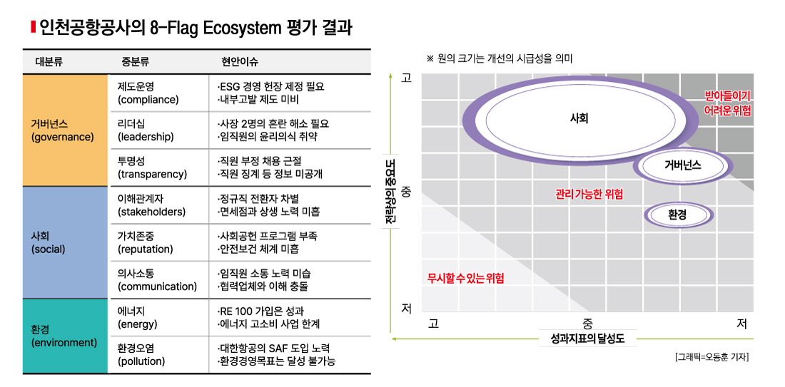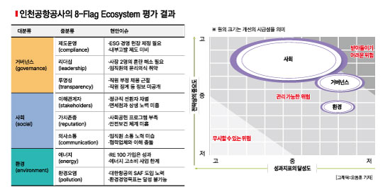 ÀÎõ°øÇ×°ø»çÀÇ ESG(ȯ°æ¡¤»çȸ¡¤Áö¹è±¸Á¶) °æ¿µ ÇöȲÀ» Á¤¹ÐÁø´ÜÇϱâ À§ÇØ È¨ÆäÀÌÁö´Â ¹°·Ð ½ºÄ«À̵¥Àϸ® µ¥ÀÌÅÍ º£À̽º(DB), ±¹°¡Á¤º¸Àü·«¿¬±¸¼Ò DB, ±¹Á¤°¨»ç ÀÚ·á, °¨»ç¿ø ÀÚ·á, °¢Á¾ Á¦º¸ µîÀ» ÂüÁ¶Çß´Ù. ±Û·Î¹ú ½ºÅĴٵ带 ÁöÇâÇÏ¸ç °³¹ßµÈ ¡®ÆÈ±â»ýŰè(8-Flag Ecosystem)¡¯À» Àû¿ëÇØ ÀÎõ°øÇ×°ø»çÀÇ ESG °æ¿µ ÇöȲÀ» Áø´ÜÇß´Ù.