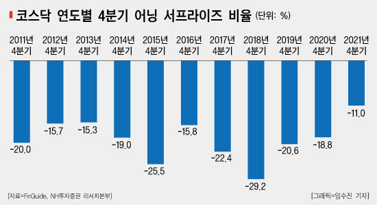 À̸¦ µÎ°í ¡®¾î´×¼îÅ©¡¯°¡ ÄÚ½º´Ú ºÎÁøÀ» À̲ø¾ú´Ù´Â °ßÇØµµ ÀÖ´Ù. ±ÝÀ¶Á¤º¸¾÷ü ¿¡ÇÁ¾Ø°¡À̵忡 µû¸£¸é Áö³ÇØ 4ºÐ±â ½ÇÀûÀ» ¹ßÇ¥ÇÏ°í ¾Ö³Î¸®½ºÆ® ½ÇÀû Àü¸ÁÄ¡°¡ Á¸ÀçÇÏ´Â 147°³ ÄÚ½º´Ú »óÀå»çÀÇ ÀÛ³â 4ºÐ±â ¿µ¾÷ÀÌÀÍ ±«¸®À²Àº -11%·Î µå·¯³µ´Ù. ½ÃÀå¿¡¼ ¿¹»óÇß´ø °Íº¸´Ù ÄÚ½º´Ú »óÀå»çµéÀÌ ÀúÁ¶ÇÑ ½ÇÀûÀ» °Åµ×´Ù´Â ¾ê±â´Ù.