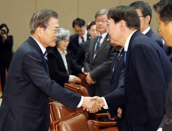 À±¼®¿ ´ëÅë·É ´ç¼±Àΰú ¹®ÀçÀÎ ´ëÅë·ÉÀÌ ´ë¼± 19ÀÏ ¸¸¿¡ ȸµ¿Çϱâ·Î Àü°Ý ÇÕÀÇÇß´Ù. º°´Ù¸¥ ÀÇÁ¦´Â ¾ø´Â °ÍÀ¸·Î ¾Ë·ÁÁ³Áö¸¸ À± ´ç¼±ÀÎ ÃøÀº ÃÖ´ë ȵÎÀÎ ´ëÅë·É Áý¹«½Ç ÀÌÀü°ú °ü·ÃÇØ ¡°6¿ù±îÁö ¸¶¹«¸®ÇÒ °Í¡±À̶ó°í ¹àÇô ¸¸³²¿¡¼ ¾î¶² ´ëȰ¡ ¿À°¥Áö ÁÖ¸ñµÈ´Ù.