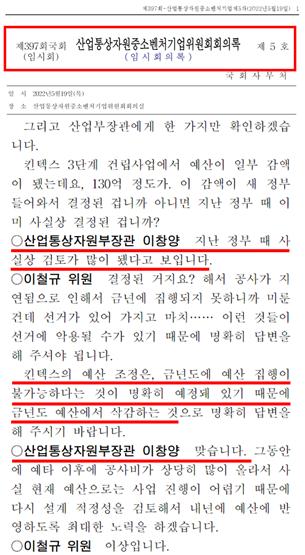 ÀÌ´Â Áö³ 5¿ù 19ÀÏ ±¹È¸ »ê¾÷Åë»óÀÚ¿øÁß¼Òº¥Ã³±â¾÷À§¿øÈ¸ ȸÀÇ·Ï¿¡ µû¸£¸é, ±¹¹ÎÀÇÈû ÀÌö±Ô ±¹È¸ÀÇ¿øÀÌ Å²ÅØ½º Á¦3Àü½ÃÀå °Ç¸³ºñ °¨¾×°ú °ü·ÃÇØ¼ ¡°ÀÌ °¨¾×ÀÌ »õ Á¤ºÎ µé¾î¿Í¼ °áÁ¤µÈ °Ì´Ï±î ¾Æ´Ï¸é Áö³ Á¤ºÎ ¶§ ÀÌ¹Ì »ç½Ç»ó °áÁ¤µÈ °Ì´Ï±î?¡±¶ó´Â Áú¹®¿¡ ÀÌâ¾ç »ê¾÷Åë»óÀÚ¿øºÎÀå°üÀº ¡°Áö³ Á¤ºÎ ¶§ »ç½Ç»ó °ËÅä°¡ ¸¹ÀÌ µÆ´Ù°í º¸ÀÔ´Ï´Ù¡±¶ó°í ´äº¯Çß´Ù.