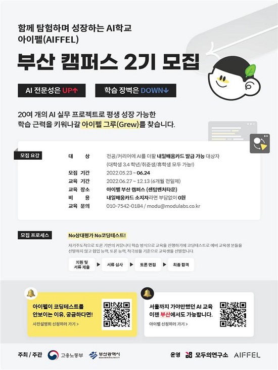 ºÎ»ê½Ã´Â Â÷¼¼´ë ÀΰøÁö´É Àü¹®°¡ À°¼º °úÁ¤ÀÎ ¡®¾ÆÀÌÆç(AIFFEL)¡¯ 2±â ±³À°»ýÀ» 24ÀϱîÁö ¸ðÁýÇÑ´Ù.