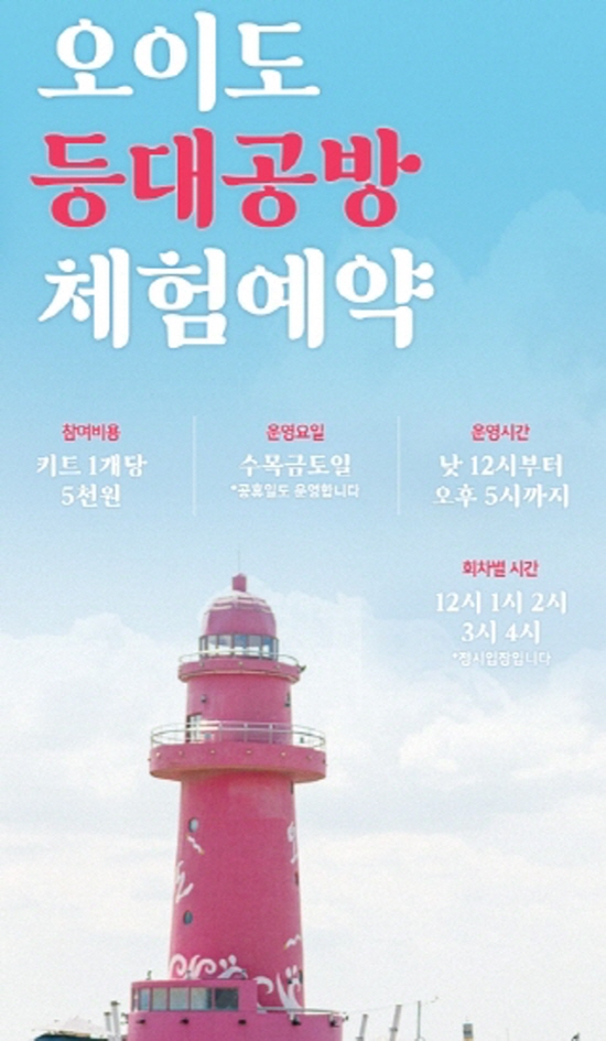 »¡°µî´ë 1Ãþ¿¡ ÀÖ´Â ¿ÀÀ̵µµî´ë°ø¹æ¿¡¼ üÇè²Ù·¯¹Ì Á¦ÀÛ Ã¼ÇèÀ» ÇÏ°í ½ÍÀ¸¸é ³×À̹ö ¿¹¾à Ç÷§ÆûÀ» ÅëÇØ ¿ÀÀ̵µµî´ë°ø¹æ »óǰÀ» »çÀü ¿¹¾àÇÏ¸é µÈ´Ù. °æ±â¹Ù´Ù ¿©ÇàÁÖ°£ ³»¿¡ ¹æ¹®ÇÏ´Â °ü±¤°´ÀÌ Ã¼Çè²Ù·¯¹ÌÀÎ Çʸ§Ä«¸Þ¶ó·Î ¿ÀÀ̵µÀÇ ¸Å·ÂÀ» ÂïÀ¸¸é ¿ÀÀ̵µµî´ë°ø¹æ¿¡¼ ÇØ´ç »çÁøÀ» Çö»óÇØ º¸³»ÁÖ´Â Çà»çµµ º´ÇàµÈ´Ù.