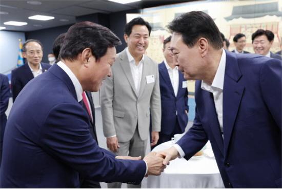 8ÀÏ ¼¿ï ¿ë»ê ´ëÅë·É½Ç¿¡¼ ¿¸° Àü±¹ ½ÃµµÁö»ç °£´ãȸ¿¡¼ À±¼®¿ ´ëÅë·ÉÀ» ¸¸³ª ½ÅÇÑ¿ï 3,4È£±â ¿øÀü»ç¾÷ Á¶¼Ó Àç°³¿Í SMR Á¦ÀÛ°øÁ¤ Á¤ºÎ ¿¹Å¸ »ç¾÷À» °ÇÀÇÇϰí Ç×°ø¿ìÁÖû »çõ ¼³Ä¡¸¦ À§ÇÑ Á¦¹Ý ÀÛ¾÷ÀÇ ¹ÚÂ÷¿Í Á¶¼Ó ¼³Ä¡ Çʿ伺À» ¼³¸íÇÑ ¹ÚÁö»ç´Â 9ÀÏ¿¡´Â Ãß°æÈ£ °æÁ¦ºÎÃѸ®¸¦ ¿¹¹æ, ÁøÇؽÅÇ× °Ç¼³ µî ³»³â ÁÖ¿ä ±¹ºñ ÃßÁø»ç¾÷ 6°Ç¿¡ ´ëÇÑ 2257¾ï¿øÀÇ Á¶±â ¿¹»êÁö¿øÀ» °ÇÀÇ ÇÏ´Â µî ÁÖ¸»µµ ¹Ý³³ÇÏ°í °Ç౺À» À̾´Ù.