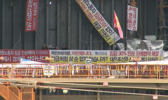 ¹ÎÁÖ³ëÃÑ ±Ý¼Ó³ëÁ¶ ÇÏûÁöȸÀÇ °æ»ó³²µµ °ÅÁ¦ ´ë¿ìÁ¶¼±ÇØ¾ç ¿ÁÆ÷Á¶¼±¼Ò¿¡¼´Â Áö³´Þ ÃʺÎÅÍ ÇÏû¾÷ü ¼Ò¼Ó ±Ù·ÎÀÚÀÇ 1%ÀÎ 120¿©¸íÀÌ 1µ¶(dock¡¤¹è¸¦ ¸¸µå´Â ÀÛ¾÷Àå)À» ºÒ¹ý Á¡°ÅÇØ ¼±¹Ú Áø¼ö ÀÛ¾÷ÀÌ ¸·Èù »óÅ´Ù. 6¸íÀº °ÇÁ¶ ÁßÀÎ ¿î¹Ý¼±ÀÇ 15m ³ôÀÌ ³°£¿¡¼ Áö³´Þ 22ÀϺÎÅÍ °í°ø³ó¼º¿¡ µ¹ÀÔÇß°í, 1¸íÀº ºÎÇÇ 1§©Â¥¸® ö ±¸Á¶¹° ¾È¿¡ µé¾î°¡ ³ó¼º ÁßÀÌ´Ù. ÇÏû³ëÁ¶´Â ´ë¿ìÁ¶¼±Çؾç Çù·Â»ç¸¦ ´ë»óÀ¸·Î ¡âÀÓ±Ý 30% Àλó ¡â»ó¿©±Ý 300% Àλó ¡â³ëÁ¶ ÀüÀÓÀÚ ÀÎÁ¤ ¡â³ëÁ¶ »ç¹«½Ç È®º¸ µîÀ» ÁÖÀåÇϰí ÀÖ´Ù. ÇÏû³ëÁ¶´Â ¶Ç ´ë¿ìÁ¶¼±ÇؾçÀ̳ª KDB»ê¾÷ÀºÇàÀÌ Á÷Á¢ ±³¼·¿¡ ³ª¼³ °ÍÀ» ¿ä±¸Çϰí ÀÖÁö¸¸ ¸¸¾à À̵éÀÌ ±³¼·¿¡ ³ª¼¸é ºÒ¹ýÆÄ°ß ¹®Á¦°¡ ºÒ°ÅÁø´Ù.