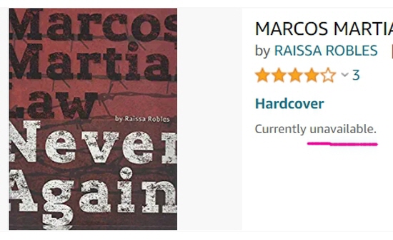 2016³â 1¿ù ÃâÆÇµÆ´ø ¡®¸¶¸£ÄÚ½º °è¾ö·É, ´Ù½Ã´Â ¾È µÅ(Marcos Martial Law: Never Again)¡¯ÀÇ ÀúÀÚ ¶óÀÌ»ç ·Îºí½º´Â ¸¶¸£ÄÚ½º 2¼¼°¡ ´ëÅë·É¿¡ ´ç¼±µÈ ÈÄ Àü ¼¼°è µ¶ÀڷκÎÅÍ ÀÌ Ã¥À» ÀçÃâÆÇ ÇØ´Þ¶ó´Â À̸ÞÀÏÀ» ¹Þ¾Ò´Ù°í CNN¿¡ ÀüÇß´Ù.
