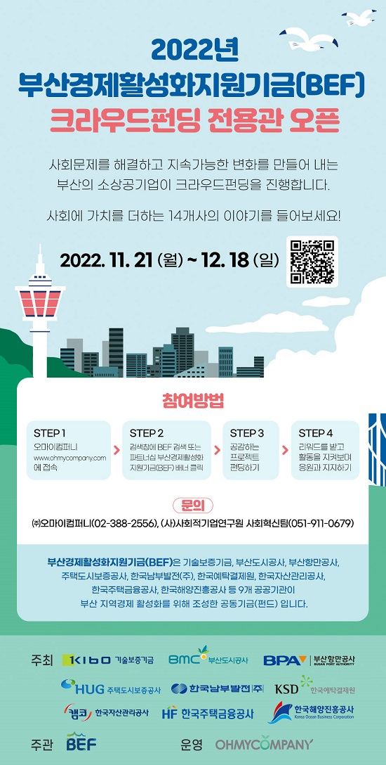ºÎ»êÁö¿ª 9°³ °ø°ø±â°üÀÌ ºÎ»ê°æÁ¦È°¼ºÈÁö¿ø±â±Ý(BEF)À» Ȱ¿ëÇØ ¼Ò»ó°øÀÎ Áö¿øÀ» À§ÇÑ Å©¶ó¿ìµåÆÝµù»ç¾÷À» Àü°³ÇÑ´Ù.
