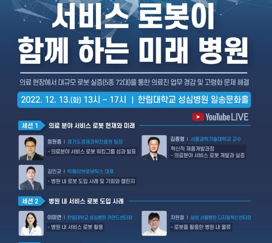 À̹ø Æ÷·³ °³ÃÖ¸¦ ÅëÇØ °æ°ú¿ø°ú ÇѸ²´ë¼º½Éº´¿øÀº 1Â÷³âµµ °úÁ¦ÀÇ ¼º°ú ¹× ÀÇ·á ºÐ¾ß ¼ºñ½º ·Îº¿ Ȱ¿ë¿¡ ´ëÇÑ Àü¹®°¡ ÀǰßÀ» °øÀ¯Çϰí, ¹æ¹®°´µé¿¡°Ô ·Îº¿ ¹× ÅëÇÕ °üÁ¦ ½Ã½ºÅÛÀ» üÇèÇÒ ¼ö ÀÖµµ·Ï ÇØ ÀÇ·á ºÐ¾ßÀÇ ¼ºñ½º ·Îº¿ µµÀÔ È®»êÀ» ÃßÁøÇÒ ¿¹Á¤ÀÌ´Ù.