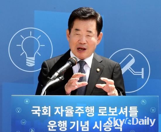 ¡ã ±èÁøÇ¥ ±¹È¸ÀÇÀåÀÌ 5ÀÏ ¿ÀÀü ¼¿ï ¿©Àǵµ ±¹È¸¿¡¼ ¡®±¹È¸ ÀÚÀ²ÁÖÇà ·Îº¸¼ÅƲ¡¯ ½Ã½ÂÀ» ¸¶Ä¡°í Âü¼®ÀÚµé°ú ¾öÁö¼Õ°¡¶ôÀ» µé¾î º¸À̰í ÀÖ´Ù. ¿ÞÂʺÎÅÍ ±èµ¿¿í Çö´ëÂ÷ ºÎ»çÀå, ±è¿ëÈ »çÀå, À̱¤Àç ±¹È¸ »ç¹«ÃÑÀå, ±è ÀÇÀå, Á¶°æÈ£ ºñ¼½ÇÀå, È«Çü¼± »ç¹«Â÷Àå. ¹Ú¹Ì³ª ¼±ÀÓ±âÀÚ ¨Ï½ºÄ«À̵¥Àϸ®