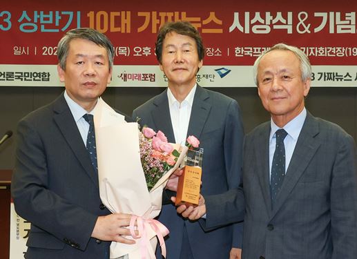 ÀÚÀ¯¾ð·Ð±¹¹Î¿¬ÇÕÀº Çѱ¹ÇÁ·¹½º¼¾ÅÍ 19Ãþ ±âÀÚȸ°ßÀå¿¡¼ ÁÖÃÖÇÑ ¡®2023 »ó¹Ý±â 10´ë °¡Â¥´º½º ½Ã»ó½Ä ¹× ±â³äÅä·Ðȸ¡¯¿¡¼ ÃÖ¾ÇÀÇ 10´ë °¡Â¥´º½º¸¦ ¼±Á¤ÇÏ°í °¡Â¥´º½º ±ÙÀý°ú °øÁ¤ÇÑ ¾ð·ÐÀÇ Ã¢´ÞÀ» À§ÇØ ³ë·ÂÇÑ 5¸íÀÇ °³Àΰú ´Üü¸¦ ¼±Á¤ÇØ °ø·Î°¨»çÆÐ¸¦ ÁõÁ¤Çß´Ù. º»Áö ½ºÄ«À̵¥Àϸ®µµ ±×°£ÀÇ °¡Â¥´º½º ±ÙÀýÀ» À§ÇÑ °ø·Î¸¦ ÀÎÁ¤¹Þ¾Æ ¼ö»óÀÚ·Î ¼±Á¤µÆ´Ù.