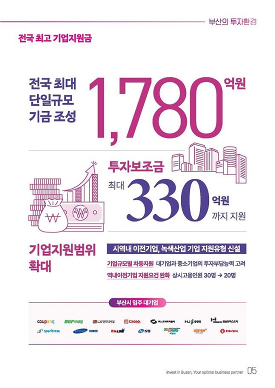 ¹ß¼ÛµÈ ¾È³»¹®¿¡´Â ºÎ»êÀÇ ¸Å·ÂÀûÀÎ ÅõÀÚȯ°æ°ú ÇÔ²² ±â¾÷ ¸ÂÃãÇü Áö¿øÁ¦µµ°¡ ¾Ë±â ½±°Ô ¼Ò°³µÅ ÀÖ´Ù.