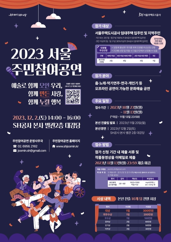 ¼¿ïÁÖÅõµ½Ã°ø»ç(SH°ø»ç)°¡ Äڷγª19 ¿£µ¥¹Í ÀÌÈÄ µ¹¾Æ¿Â ÀÏ»óÀÇ ±â»ÝÀ» ÇÔ²² ³ª´ ¼ö ÀÖ´Â °ø°øÁÖÅà ÀÔÁֹΰú Áö¿ªÁֹΠÈÇÕÀÇ Àå ¡®2023³â ÁÖ¹ÎÂü¿©°ø¿¬¡¯À» °³ÃÖÇÏ°í ³»´Þ 13ÀϱîÁö ÀÛǰÀ» Á¢¼ö¹Þ´Â´Ù°í 30ÀÏ ¹àÇû´Ù.