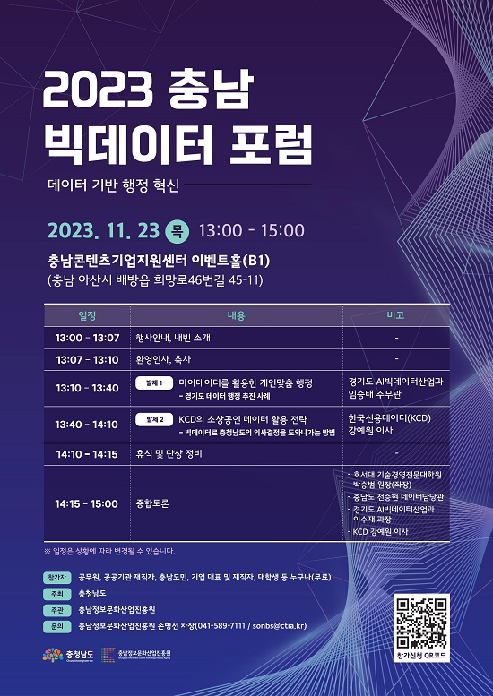 ÃæÃ»³²µµ´Â 23ÀÏ Ãæ³²ÄÜÅÙÃ÷±â¾÷Áö¿ø¼¾ÅÍ À̺¥Æ®È¦¿¡¼ µ¥ÀÌÅÍ ±â¹Ý ÇàÁ¤ Çõ½Å ¹æ¾ÈÀ» ¸ð»öÇϱâ À§ÇÑ ¡®2023 Ãæ³² ºòµ¥ÀÌÅÍ Åä·Ðȸ¡¯¸¦ °³ÃÖÇÑ´Ù°í 21ÀÏ ¹àÇû´Ù.