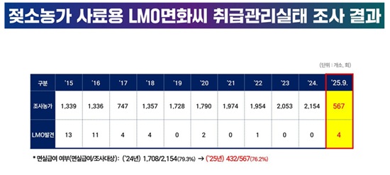 ±âÁ¸ ½ÇÅ Á¶»ç¿¡¼´Â ³ªÅ¸³ªÁö ¾Ê¾Ò´ø °ÍÀÌ ¿Ãµé¾î 567³ó°¡¿¡¼ 4°ÇÀÇ LMO°¡ ¹ß°ßµÆ´Ù. ¶Ç LMO ¼öÀÔ・¿î¼Û・º¸°ü µî Ãë±Þ¾÷ü 612°÷ °¡¿îµ¥ 2°÷¿¡¼ LMO¸éȾ¾°¡ ³ª¿Ô´Ù.