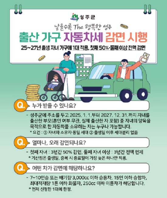 ¼ºÁÖ±º °ü°èÀÚ´Â ¡°À̹ø ÀÚµ¿Â÷¼¼ °¨¸éÀº Ãâ»ê¡¤¾çÀ° °¡Á¤ÀÇ ½ÇÁúÀû ¼¼Á¦ ºÎ´ãÀ» ¿ÏÈÇϰí Ãâ»ê Ä£È ¹®È¸¦ È®»êÇϱâ À§ÇÑ Á¶Ä¡ÀÌ´Ù¡±¶ó¸ç ¡°¡®³ºÀ»¼ö·Ï The ÇູÇÑ ¼ºÁÖ¡¯¶ó´Â ±¸È£Ã³·³ ¾ÆÀ̸¦ ³º°í Ű¿ì±â ÁÁÀº ȯ°æÀ» ¸¸µé¾î°¡°Ú´Ù¡±°í ¸»Çß´Ù.