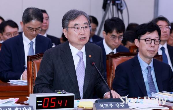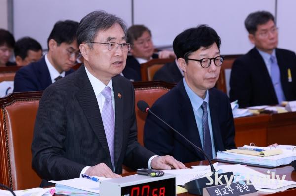 ¡ã Á¶Çö ¿Ü±³ºÎ Àå°üÀÌ 13ÀÏ ¼¿ï ¿©Àǵµ ±¹È¸¿¡¼ ¿¸° ¿Ü±³ÅëÀÏÀ§¿øÈ¸ ±¹Á¤°¨»ç¿¡¼ ÀÇ¿ø ÁúÀǸ¦ µè°í ÀÖ´Ù. À̳¯ ±¹Á¤°¨»ç¿¡¼´Â įº¸µð¾Æ¿¡¼ Çѱ¹ÀÎ ´ëÇлýÀÌ Áß±¹ÀÎ Á¶Á÷¿¡ ³³Ä¡µÅ °í¹® ³¡¿¡ ¼ûÁø »ç°ÇÀ» µÎ°í ¿©¾ß°¡ ÇѸñ¼Ò¸®·Î ¿Ü±³ºÎ¸¦ °ÇÏ°Ô ÁúŸÇß´Ù. ¹Ú¹Ì³ª ±âÀÚ ¨Ï½ºÄ«À̵¥Àϸ®