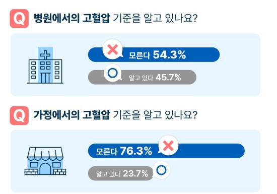 ±× °á°ú ÀϹÝÀΠ300¸í Áß Àý¹Ý ÀÌ»ó(54.3%)ÀÌ º´¿ø¿¡¼­ÀÇ °íÇ÷¾Ð Áø´Ü ±âÁØ(¼öÃà±â Ç÷¾Ð 140mmHg ÀÌ»ó ¶Ç´Â À̿ϱâ Ç÷¾Ð 90mmHg ÀÌ»ó)À» ¾ËÁö ¸øÇÏ´Â °ÍÀ¸·Î È®ÀεÆÀ¸¸ç, °¡Á¤¿¡¼­ÀÇ °íÇ÷¾Ð Áø´Ü ±âÁØ(¼öÃà±â Ç÷¾Ð 135mmHg ÀÌ»ó ¶Ç´Â À̿ϱâ Ç÷¾Ð 85mmHg ÀÌ»ó)¿¡ ´ëÇÑ ÀÎÁöÀ²Àº À̺¸´Ùµµ ³·Àº 23.7%¿¡ ºÒ°úÇß´Ù.