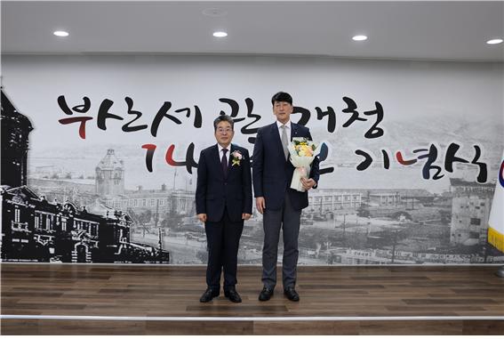 ¡ã 10ÀÏ ´ë¼±ÁÖÁ¶°¡ ºÎ»êº»ºÎ¼¼°ü °³Ã» 142Áֳ⠱â³ä Æ÷»ó½Ä¿¡¼­ ¼¼°üÀå ǥâÀ» ¼ö»óÇß´Ù. ÃÖÈ«¼º(¿À¸¥ÂÊ) ´ë¼±ÁÖÁ¶ ´ëÇ¥°¡ ±è¿ë½Ä ºÎ»ê¼¼°üÀå°ú ±â³ä»çÁøÀ» Âï°í ÀÖ´Ù. ´ë¼±ÁÖÁ¶