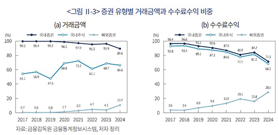 ¼ö¼ö·áÀ²Àº 10³â »õ »ç½Ç»ó ¹Ý°ªÀÌ µÆ´Ù. º¸°í¼´Â ±¹³»ÁÖ½Ä À§Å¹¸Å¸Å ¼ö¼ö·áÀ² Æò±ÕÀÌ 2017³â 7.71bp¿¡¼ 2024³â 3,89bp·Î ¶³¾îÁ³´Ù°í ºÐ¼®Çß´Ù. ÇØ¿ÜÁõ±Ç ¼ö¼ö·áÀ²µµ 2019³â 27.47bp¿¡¼ 2024³â 10.42bp±îÁö ³»·Á°¬´Ù. ´Ù¼ö Áõ±Ç»ç°¡ ½Å±Ô¡¤ÈÞ¸é °í°´À» ´ë»óÀ¸·Î ÇѽÃÀû ¹«·á À̺¥Æ®¸¦ ¹Ýº¹ÇÏ¸é¼ °ø½Ã»ó ¼ö¼ö·áÀ²°ú ½ÇÁ¦ ºÎ°ú ¼ö¼ö·á °£ ±«¸®µµ »ó´çÇÑ °ÍÀ¸·Î ³ªÅ¸³µ´Ù.