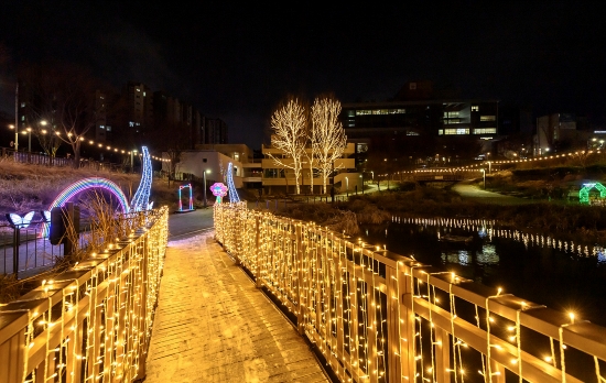 ½ÅÁ¤³×°Å¸® ¡®ÇØ´©¸®ºÐ¼ö±¤À塯¿¡´Â ³ôÀÌ 7m ´ëÇüÆ®¸®¿Í ´«»ç¶÷ Á¶Çü¹°, ¼ö¸ñÀ» Ȱ¿ëÇÑ º°ºû±æÀÌ ¼³Ä¡µÇ¸ç ÀÔüÀûÀÎ ¾ß°æÀ» ¿¬ÃâÇÑ´Ù.
