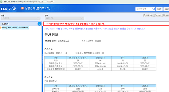 ½ÇÁ¦·Î ¿ÃÇØ »ï¼ºÀüÀÚ 3ºÐ±â »ç¾÷º¸°í¼´Â 14ÀÏ¿¡ °ø½ÃµÆÁö¸¸ XBRL ºä¾î¿¡¼ ´Ù¿î·Îµå°¡ °¡´ÉÇÑ ½ÃÁ¡Àº 21ÀÏÀ̾ú´Ù. ½Ç¹«ÀÚ´Â ¡°ÇÏ·ç¿¡µµ ¼ö¸¹Àº °áÁ¤À» ³»·Á¾ß ÇÏ´Â ÅõÀÚÀÚÀÇ ¼±ÅñÇÀÌ Á¦Çѵƴ١±°í ÁöÀûÇß´Ù.