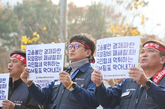 Àü±¹±Ý¼Ó³ëµ¿Á¶ÇÕ Çѱ¹Áö¿¥ÁöºÎ´Â 24ÀÏ ¼¿ï ¿©Àǵµ »ê¾÷ÀºÇà º»Á¡ ¾Õ¿¡¼ ¾à 150¸íÀÇ Á¶ÇÕ¿øÀÌ Âü°¡ÇÑ °¡¿îµ¥, ¡®Çѱ¹GM Á÷¿µÁ¤ºñ Æó¼â ÀúÁö! »ê¾÷ÀºÇà ±Ôź °áÀÇ´ëȸ¡¯¸¦ °³ÃÖÇß´Ù.