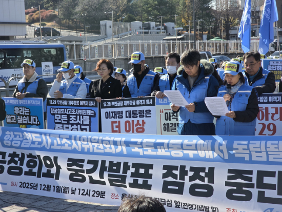 12.29 ¹«¾È°øÇ× Á¦ÁÖÇ×°ø ¿©°´±âÂü»ç À¯°¡Á·ÇùÀÇȸ´Â Ç×°øÃ¶µµ»ç°íÁ¶»çÀ§¿øÈ¸(Ç×öÀ§)°¡ ±¹Åä±³ÅëºÎ¿¡¼ µ¶¸³µÉ ¶§±îÁö °øÃ»È¸¿Í Áß°£¹ßÇ¥ ÀáÁ¤ Áß´ÜÀ» ¿ä±¸Çß´Ù.