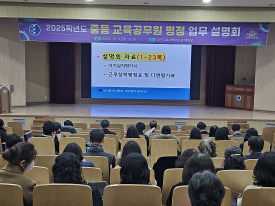 ´ëÀü½Ã±³À°Ã»ÀÌ 5¡¤8ÀÏ ¾çÀϰ£ ´ëÀü±³À°°úÇבּ¸¿ø¿¡¼ Áß¡¤°í¡¤°¢Á¾¡¤Æ¯¼öÇб³ ±³°¨°ú ±³»ç¡¤±³À°Àü¹®Á÷¿øÀ» ´ë»óÀ¸·Î 2025Çг⵵ Áßµî ±³À°°ø¹«¿ø ÆòÁ¤ ¾÷¹« ¼³¸íȸ¸¦ °³ÃÖÇß´Ù.