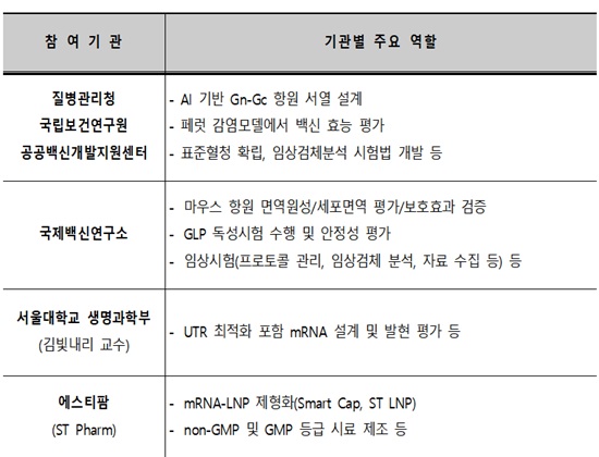 À̹ø ¿¬±¸´Â °¨¿°º´¿¹¹æÇõ½Å¿¬ÇÕ(CEPI)ÀÌ ÃßÁøÇÏ´Â Æä´º¹ÙÀÌ·¯½º°ú(phenuivirus) ÇÁ·ÎÅäŸÀÔ ¹é½Å °³¹ß »ç¾÷ÀÇ Çϳª·Î, ¸Þ½ÅÀú ¸®º¸ÇÙ»ê(mRNA)±â¹Ý ¹é½Å ¼³°èºÎÅÍ ÀÓ»ó 1¡¤2»ó±îÁö ´Ü°èÀûÀ¸·Î °³¹ßÇÏ´Â Àå±â ÇÁ·ÎÁ§Æ®´Ù.