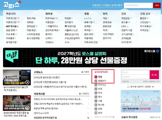 °í·Á´ë ±³¿ìµéÀÇ Ä¿¹Â´ÏƼ »çÀÌÆ®ÀÎ °íÆÄ½º¿¡´Â 14ÀÏ 15½Ã ÇöÀç ½Ç½Ã°£ °Ë»ö¾î 1À§¿Í 2À§¿¡ ¿µÃ¶, ¿µÃ¶¹ö°Å°¡ °¢°¢ ¼øÀ§¸¦ Â÷ÁöÇϰí ÀÖ´Ù. ±×¸¸Å­ °í´ë»ýµéÀÇ ¿µÃ¶ ¾ÆÀú¾¾¿Í ±×ÀÇ ¿µÃ¶ ¹ö°Å »ç¶ûÀº ³²´Ù¸¥ °ü½É»ç¿´´Ù.