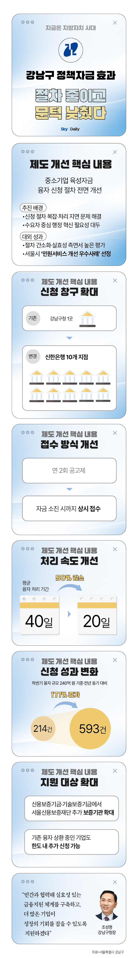 ¼­¿ï °­³²±¸°¡ Áß¼Ò±â¾÷ À°¼ºÀÚ±Ý À¶ÀÚ ½Åû ÀýÂ÷¸¦ Àü¸é °³¼±ÇÑ °á°ú, ó¸® ±â°£Àº Àý¹ÝÀ¸·Î ÁÙ°í ½Åû °Ç¼ö´Â µÎ ¹è °¡±îÀÌ ´Ã¾ú´Ù.