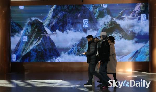 ¡ã 1ÀÏ ¼¿ï½Ãû º»°ü 1Ãþ ¼¿ï¸²(×ù) ¹Ìµð¾î¿ù¿¡¼ ±èº¸½½ °³ÀÎÀü ¡®ÇØÀ̶ó:½É¿¬ÀÇ ±â¾ï¡¯ÀÌ ¼ÛÃâµÇ°í ÀÖ´Ù. À̹ø Àü½Ã´Â ±âÈÄ À§±â·Î º¯ÈÇÑ ÀÌÈÄÀÇ ¼¼°è¸¦ ¹Ù´Ù, ±× Áß¿¡¼µµ '½ÉÇØ' ¶ó´Â °ø°£À» ÅëÇØ ¹Ù¶óº¸´Â Àü½Ã·Î °¡»óÀÇ µµ½Ã ¡®ÇØÀÌ¶ó¡¯ ¸¦ Áß½ÉÀ¸·Î Àü°³µÇ¸ç °ü¶÷°´Àº ¹Ìµð¾î¿ù°ú Áõ°Çö½Ç(AR) ÀÛǰÀ» ÅëÇØ ÀÌ º¯ÈµÈ ¼¼°è¸¦ Á÷Á¢ ¸¶ÁÖÇÒ ¼ö ÀÖ´Ù. ¹Ú¹Ì³ª ±âÀÚ ¨Ï½ºÄ«À̵¥Àϸ®