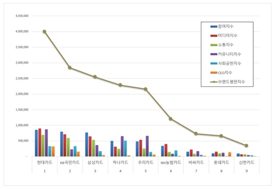 3À§, »ï¼ºÄ«µå ºê·£µå´Â Âü¿©Áö¼ö 774,308 ¹Ìµð¾îÁö¼ö 646,258 ¼ÒÅëÁö¼ö 539,250 Ä¿¹Â´ÏƼÁö¼ö 365,624 »çȸ°øÇåÁö¼ö 173,263 CEOÁö¼ö 49,936ÀÌ µÇ¸é¼­ ºê·£µåÆòÆÇÁö¼ö 2,548,639·Î ºÐ¼®µÆ´Ù. Áö³­ 12¿ù ºê·£µåÆòÆÇÁö¼ö 3,336,715¿Í ºñ±³Çغ¸¸é 23.62% Ç϶ôÇß´Ù.