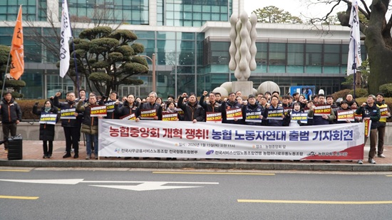 ±è±¤Ã¢ Àü±¹¼­ºñ½º»ê¾÷³ëÁ¶¿¬¸Í À§¿øÀåÀº ³óÇùÁß¾ÓȸÀÇ ±ÇÇÑ ÁýÁß ±¸Á¶°¡ ÇöÀåÀÇ ³ëµ¿ÀÚµéÀ» ¼Ò¸ðǰó·³ ¸¸µé°í ÀÖ´Ù°í ÁöÀûÇß´Ù. ³ó¹Î Áö¿øÀº ÁÙ°í, À¯Åë ³ëµ¿ÀÚµéÀÇ ³ëµ¿Á¶°ÇÀº ¾ÇÈ­µÇ°í ÀÖ´Ù¸ç Çϳª·ÎÀ¯Åë ¹«±â°è¾àÁ÷ ³ëµ¿ÀÚµéÀÇ Â÷º° Çö½ÇÀ» ²¨³Â´Ù. ½Ä´ë¿Í ±³ÅëºñÁ¶Â÷ Á¦´ë·Î º¸Àå¹ÞÁö ¸øÇÏ´Â »óȲÀ̶ó°í Æø·ÎÇß´Ù.